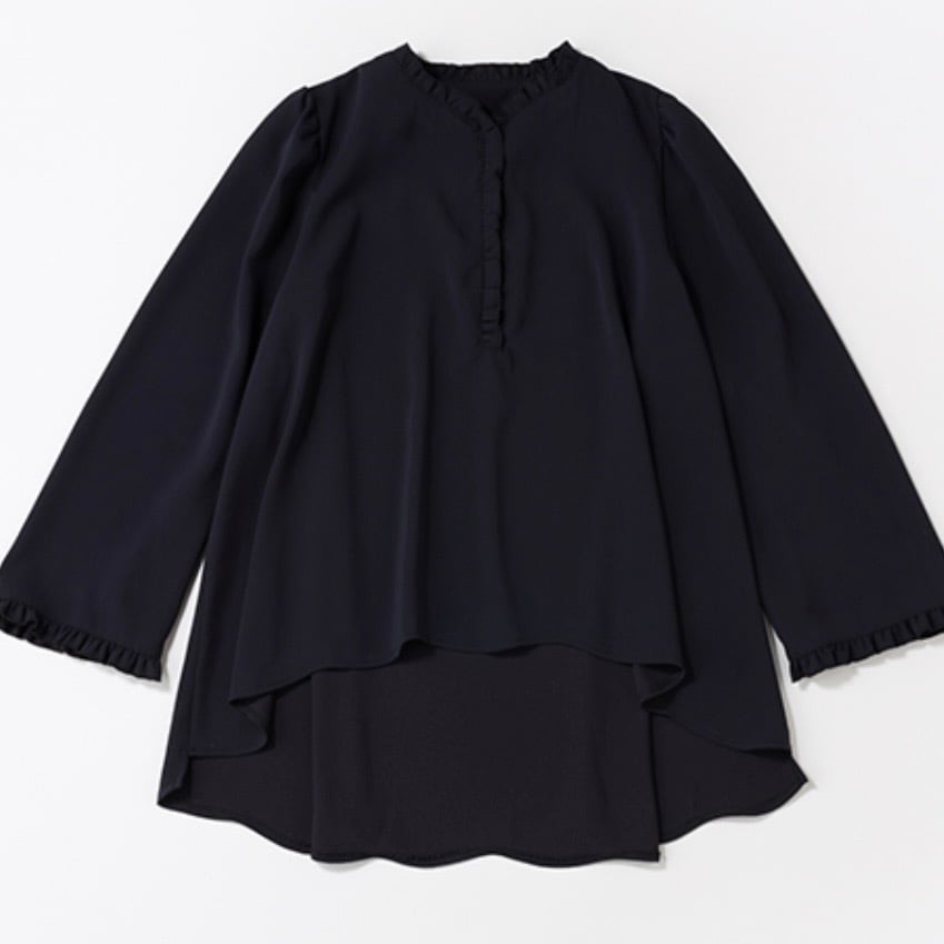 【POINT】 ・ミニフリルがさりげなくフェミニンな雰囲気を演出。 ・長袖仕様で、季節を問わず快適に着用可能なスタイル。